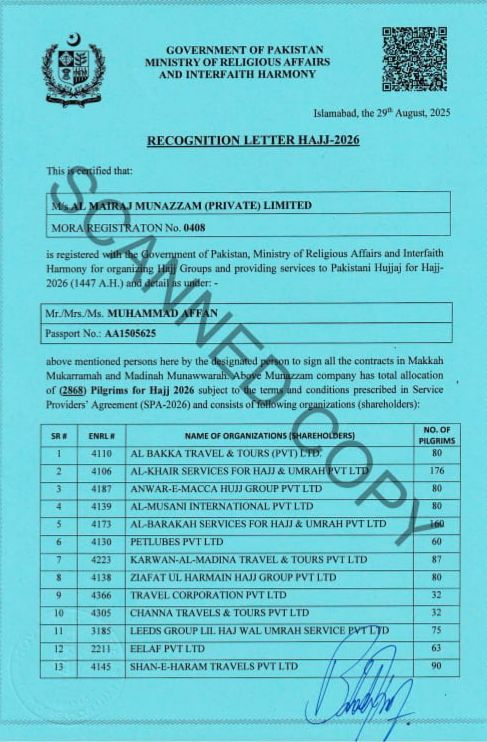 Recognition Letter Hajj 2026